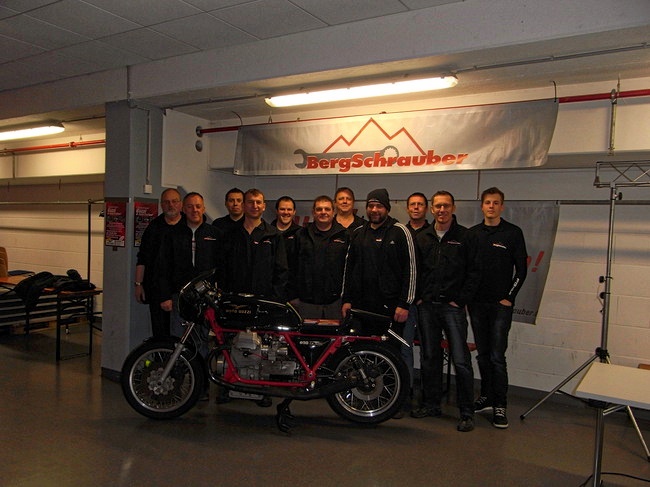 Die Bergschrauber sind ein zusammengewürfelter Haufen die ein Interesse zusammen gebracht hat, und zwar alte Motorräder und Autos. Wir sind also kein organisierter Verein sondern eher eine Interessensgemeinschaft die sich daran erfreut, dass jeder dem anderen irgend wie helfen kann sein altes Motorrad oder was auch immer, zum Laufen zu bringen und daran Spaß zu haben. Dies findet meisten in irgend welchen dunklen Garagen nach Feierabend oder am Wochenende statt und kann schon mal länger dauern. Wenn dann alles funktioniert und die Kiste wieder läuft werden natürlich geile Touren zusammen organisiert. Die Mannschaft der Bergschrauber umfasst 14 Personen plus natürlich der Frauen und Kinder ohne deren Unterstützung die meisten Aktivitäten nicht möglich wären.